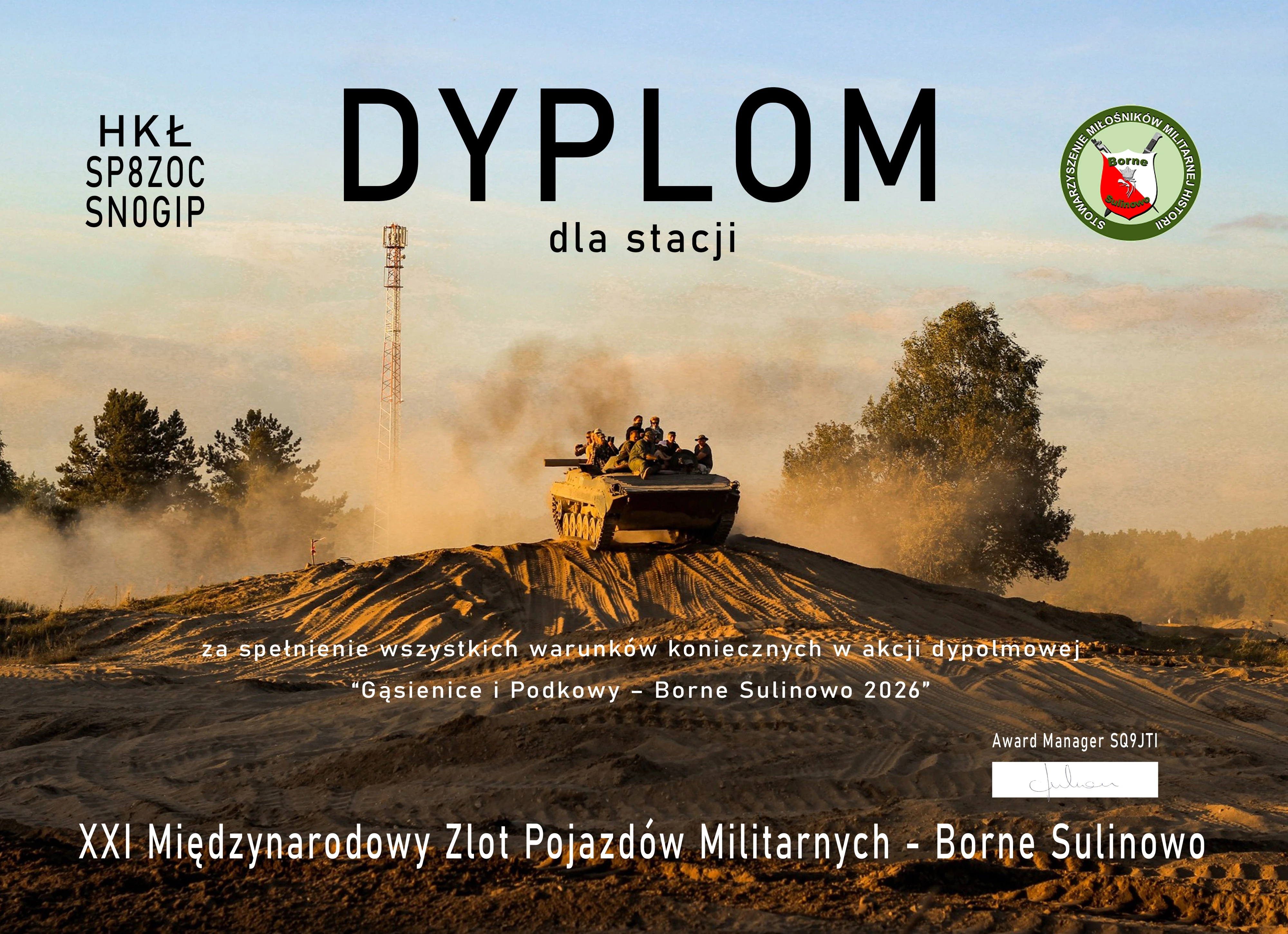 Akcja dyplomowa ma na celu propagowanie Stowarzyszenia Miłośników Militarnej Historii Bornego Sulinowa oraz Harcerskich Klubów Łączności SP8ZOC i SN0GIP przy Chorągwi Mazowieckiej ZHP. Jest to wyjątkowa okazja, by uczcić działalność Stowarzyszenia i Harcerzy oraz popularyzować krótkofalarstwo w Polsce i na świecie.