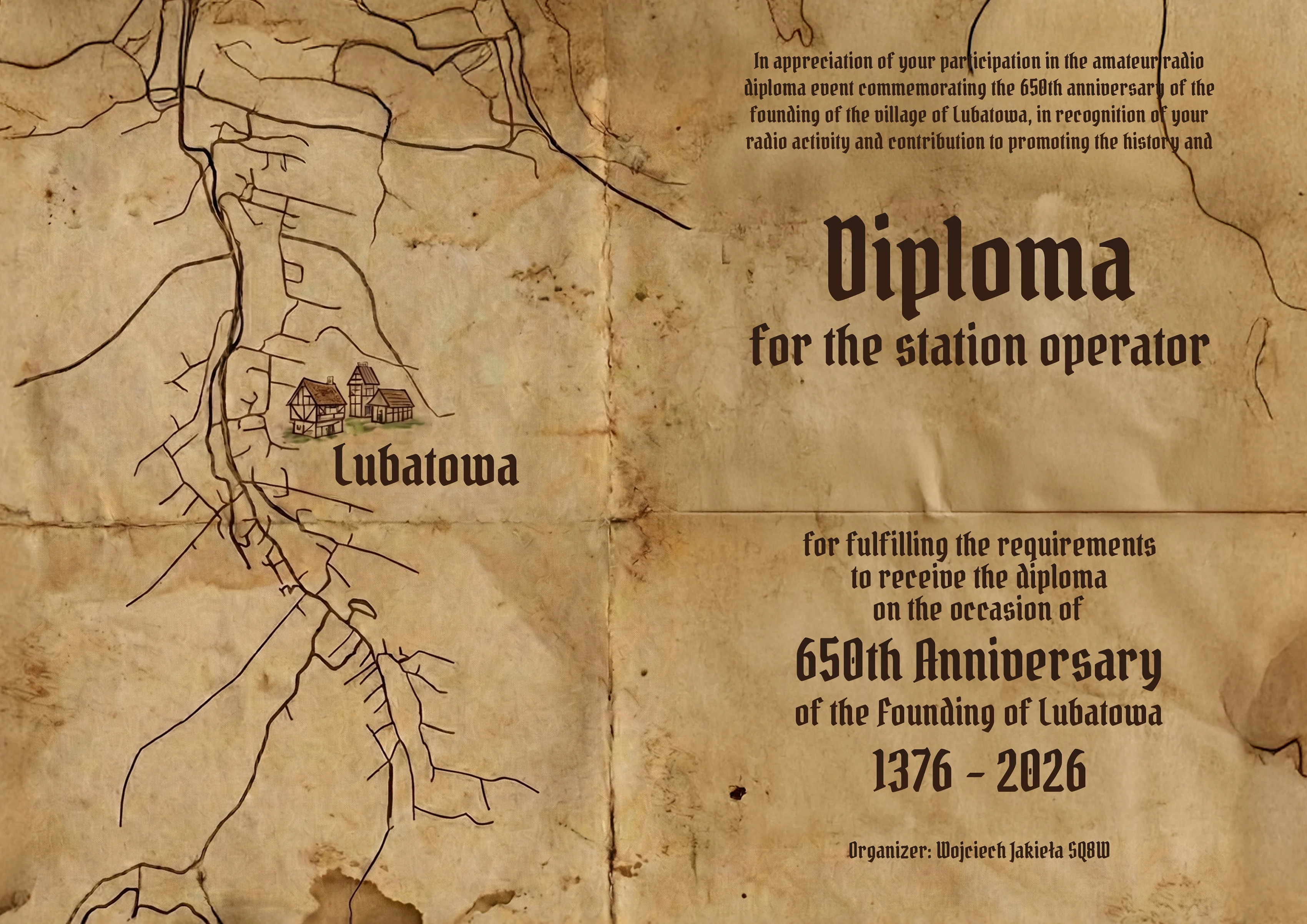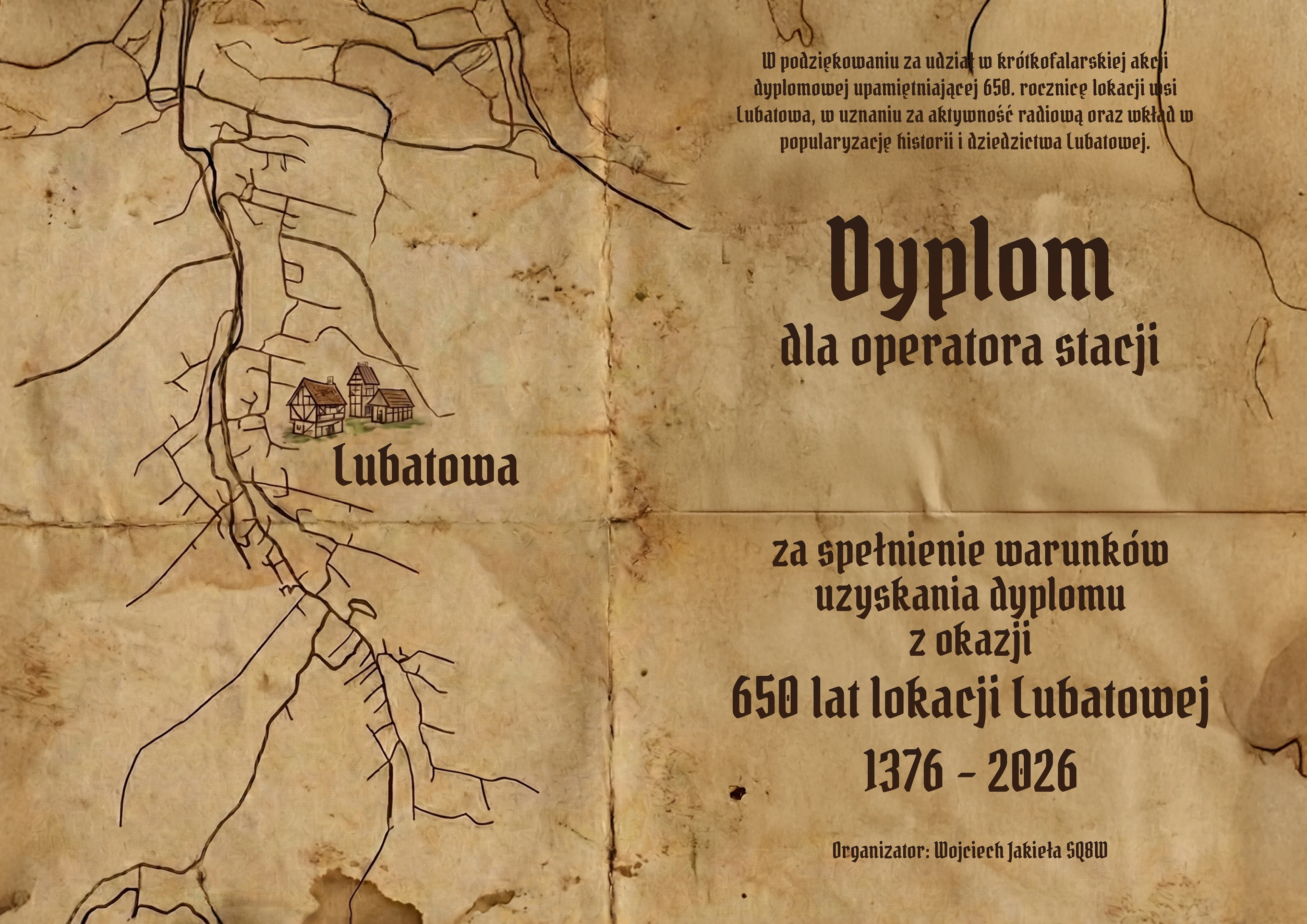 The diploma activity is organized on the occasion of 650 years of Lubatowa village foundation. The history of the village dates back to 1376, when a foundation privilege was signed in Sanok, under which Duke Władysław Opolczyk entrusted Stanisław Thoka with establishing a settlement by the Schowa and Lubachowa streams. Lubatowa developed over the centuries thanks to the efforts of successive generations of inhabitants, who built the community, farms, and traditions. Today, the village is picturesquely located in the Low Beskids and possesses a rich historical and cultural heritage.