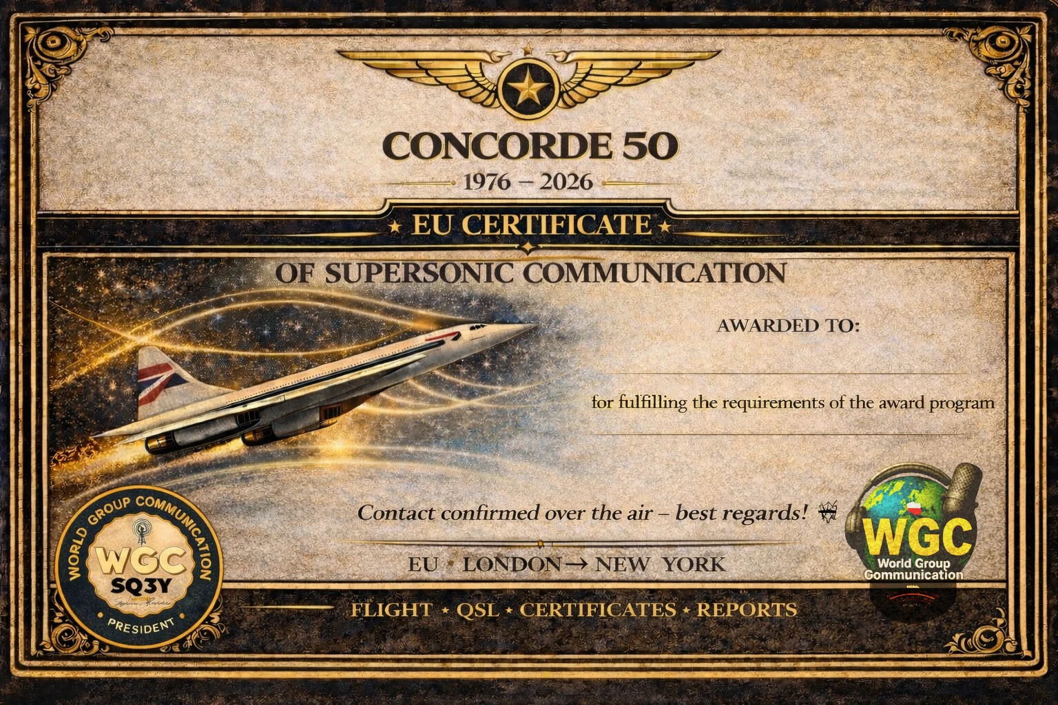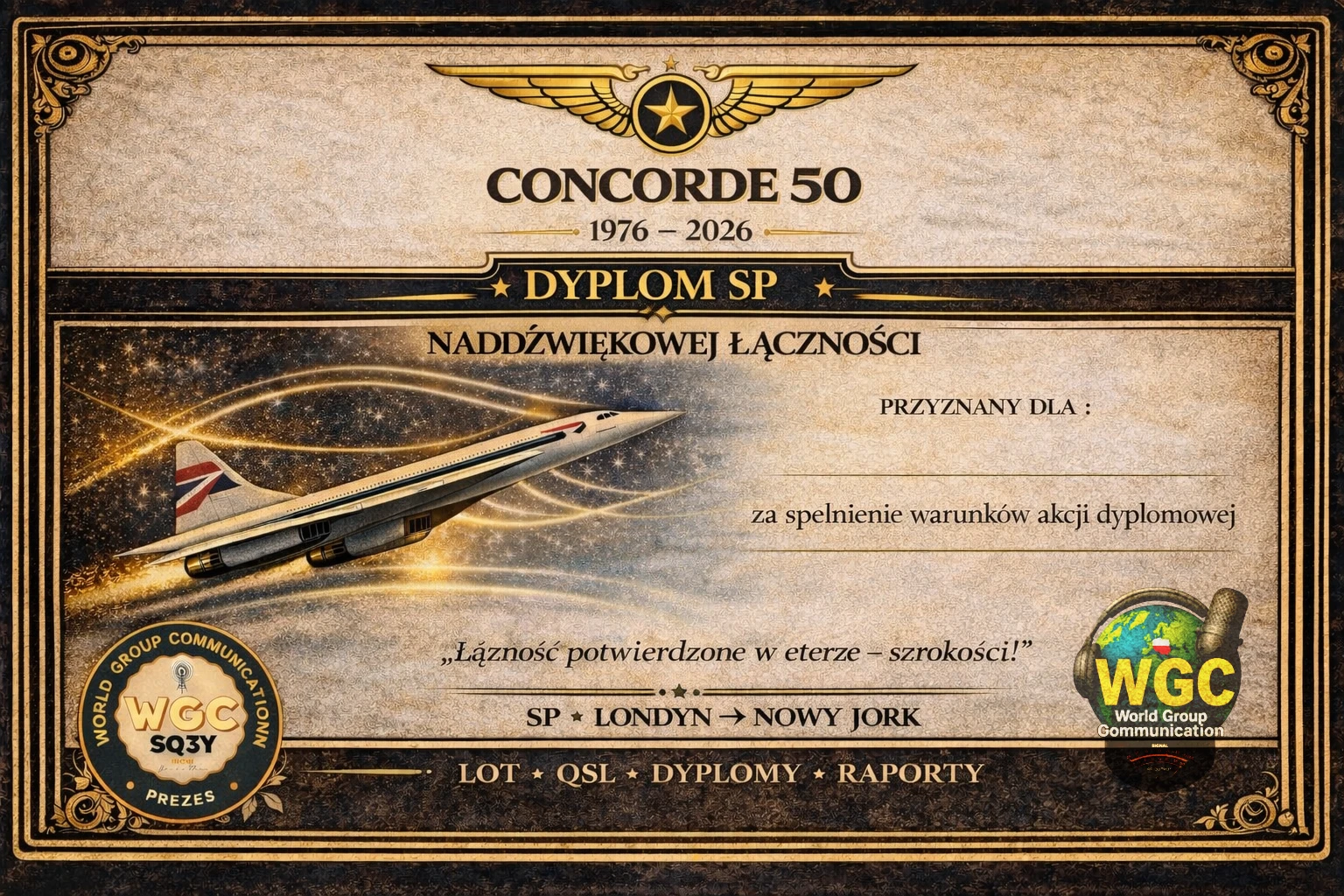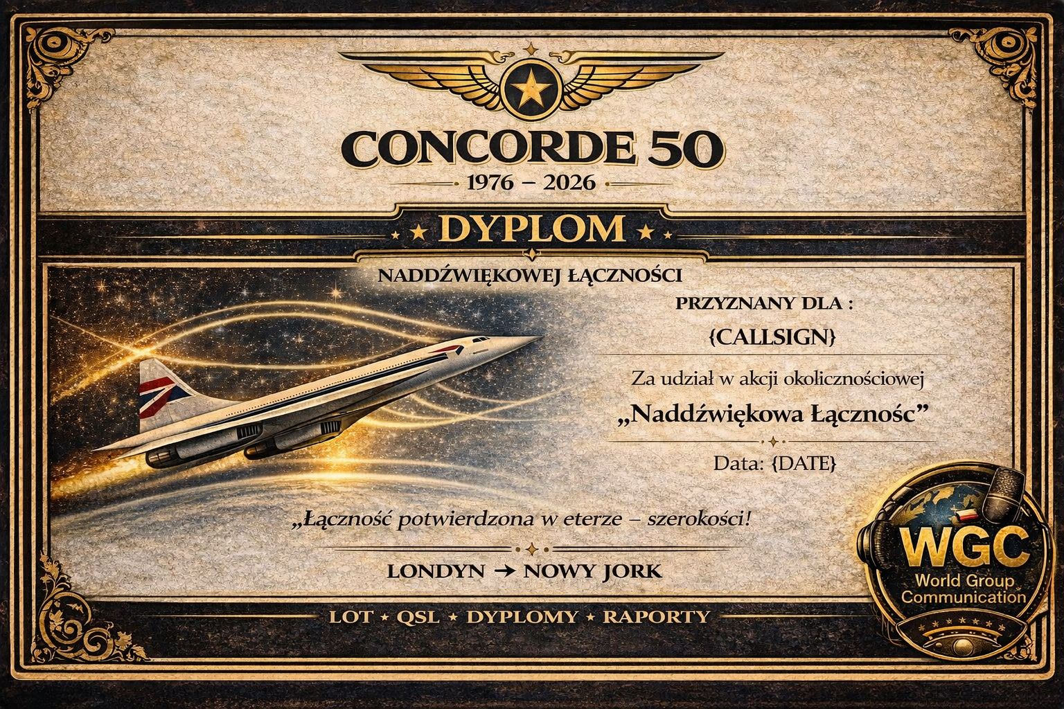 Pięćdziesiąt lat później wracamy do tej złotej ery lotnictwa – tym razem na falach radiowych. Zapraszamy radioamatorów z całego świata do wspólnych „lotów” na naszych pasmach, symbolicznie nawiązujących do historycznych tras Londyn / Paryż – Nowy Jork.