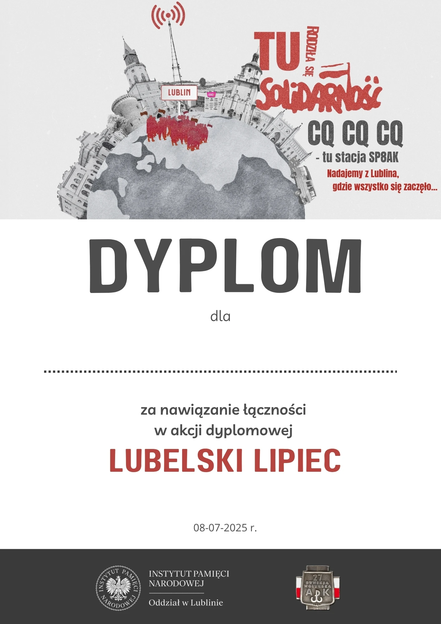 W związku z obchodami 45. rocznicy Lubelskiego Lipca 1980 Oddział Instytutu Pamięci Narodowej w Lublinie we współpracy ze środowiskiem 27 Wołyńskiej Dywizji Piechoty Armii Krajowej oraz galerią VIVO! Lublin organizuje akcję dyplomową.